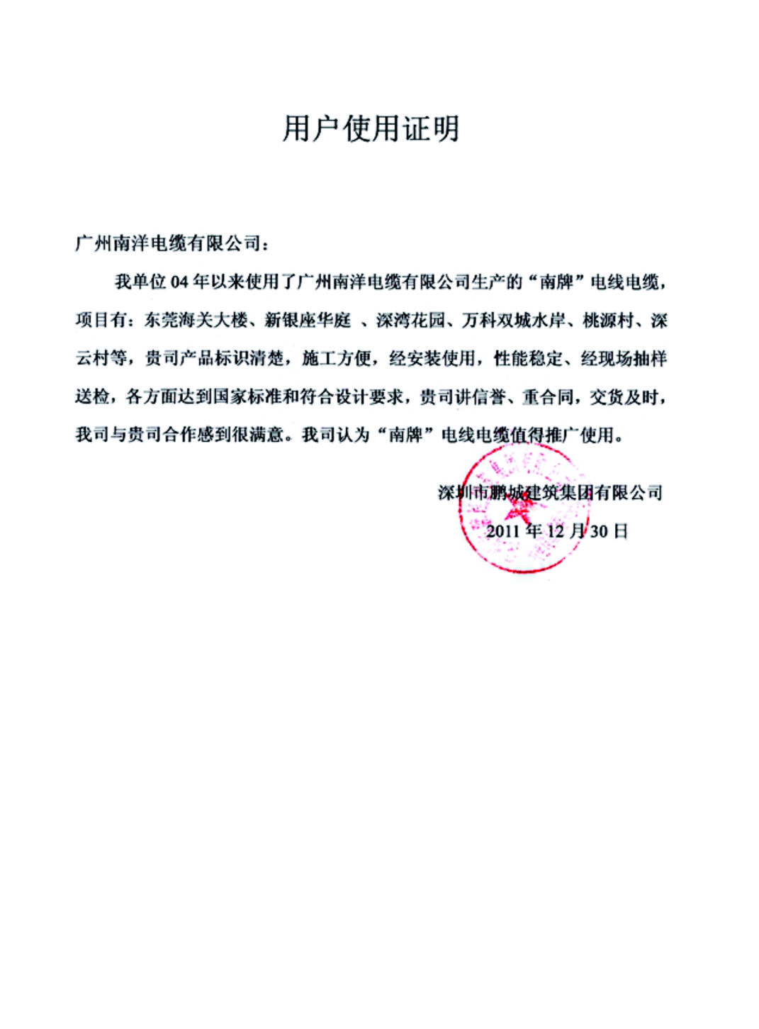 深圳市鵬(péng)城建築集團有限公司用戶(hù)使用證明