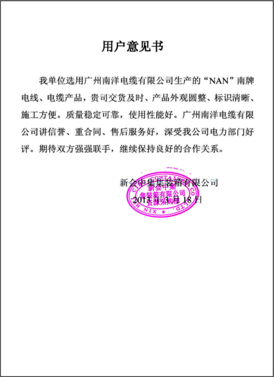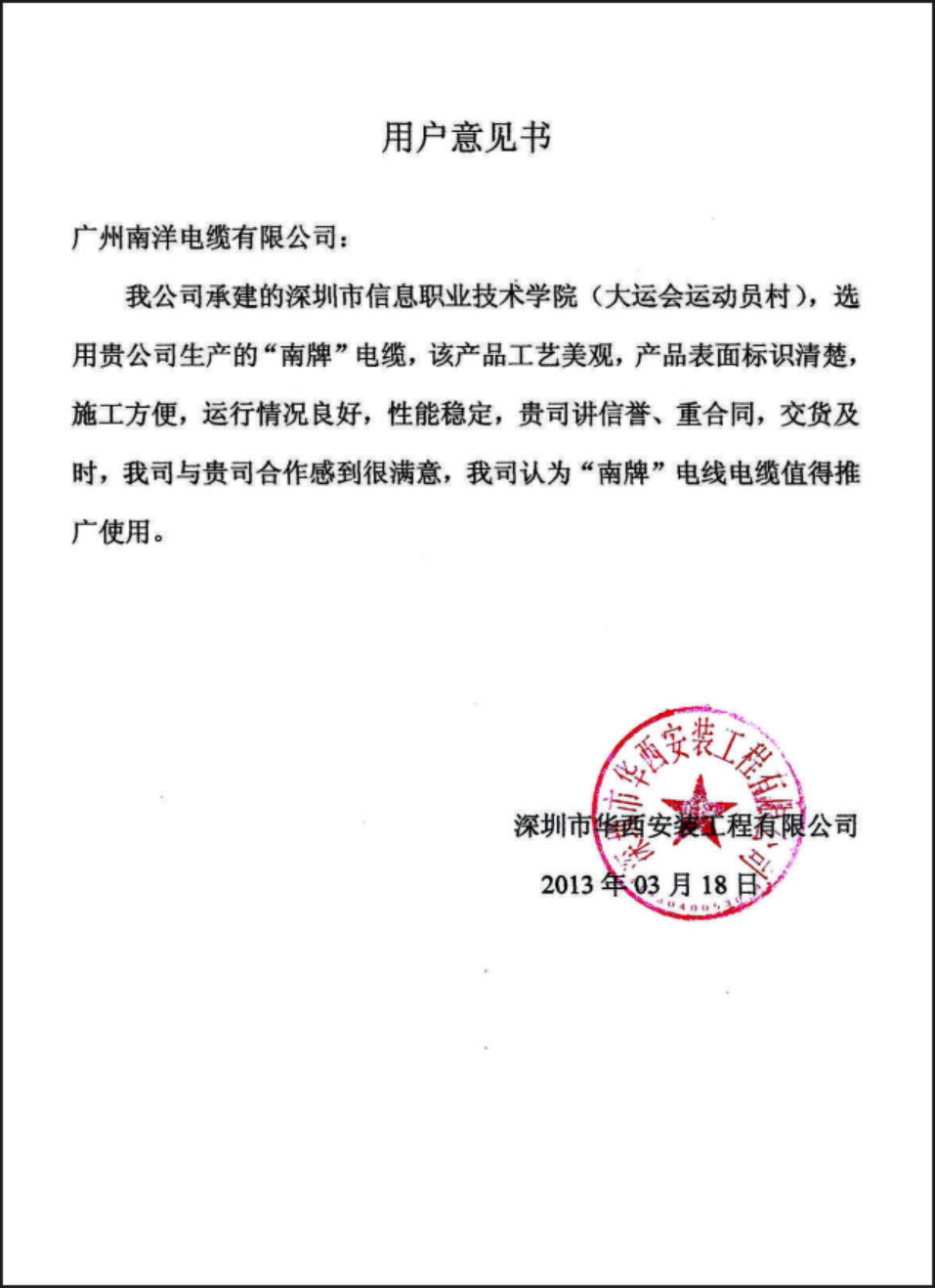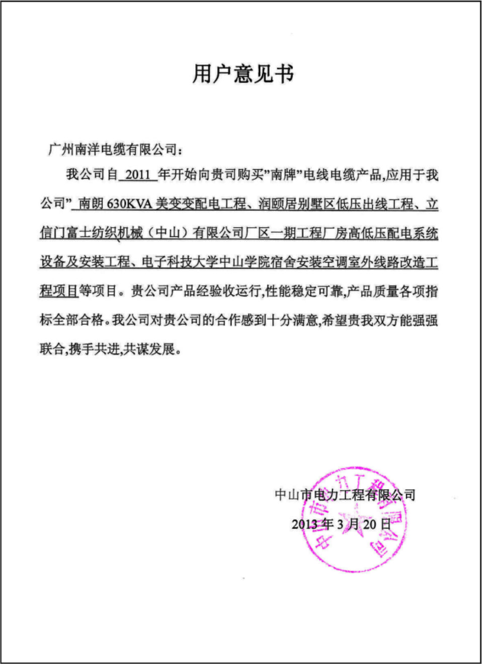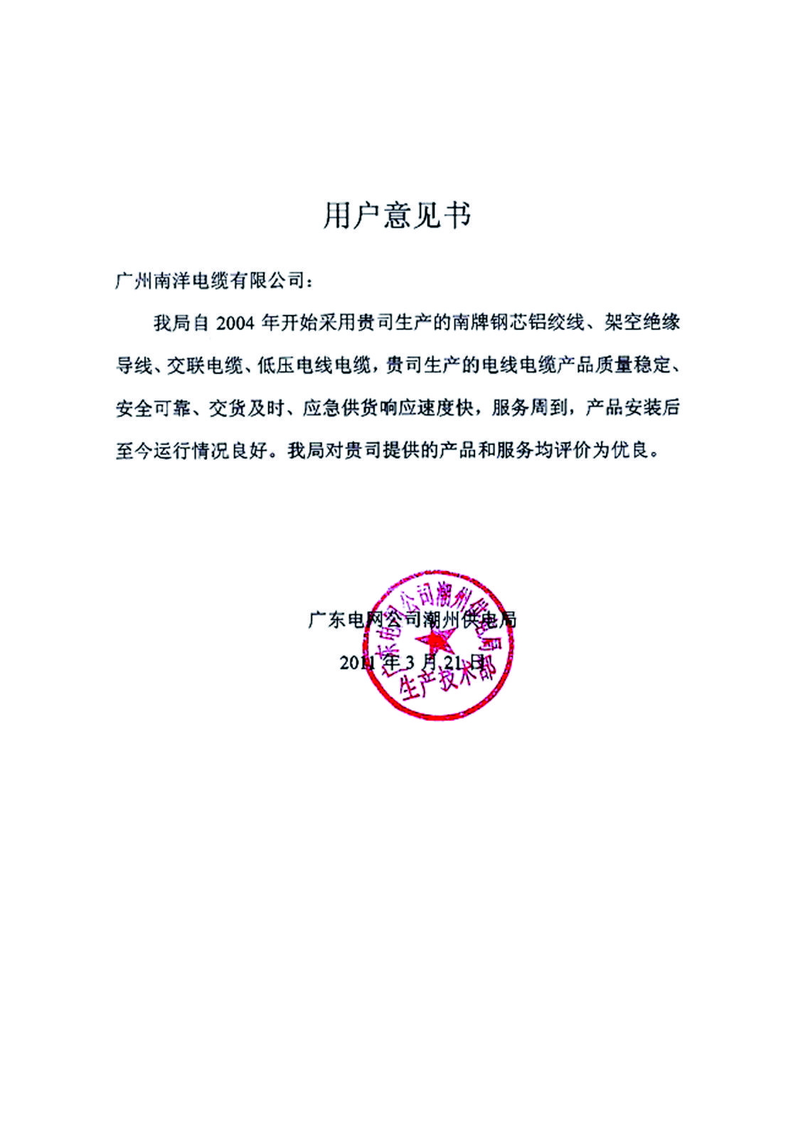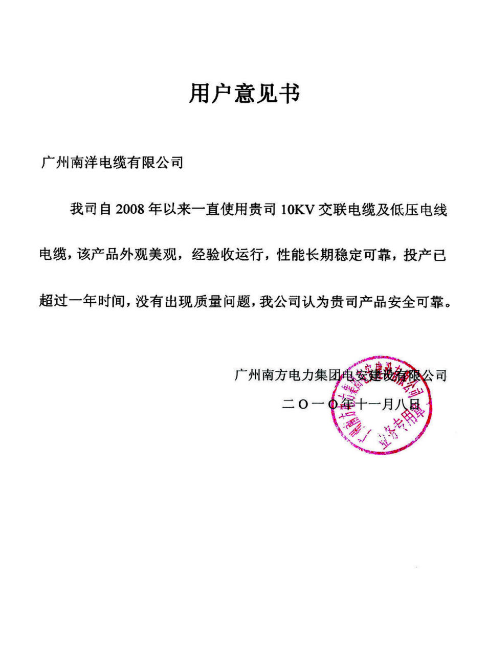 廣(guǎng)州南方電(diàn)建集團用戶意見書