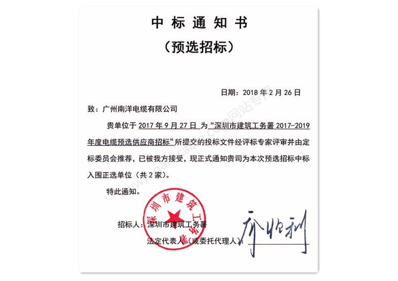 深圳工務(wù)署中标通知書(shū)
