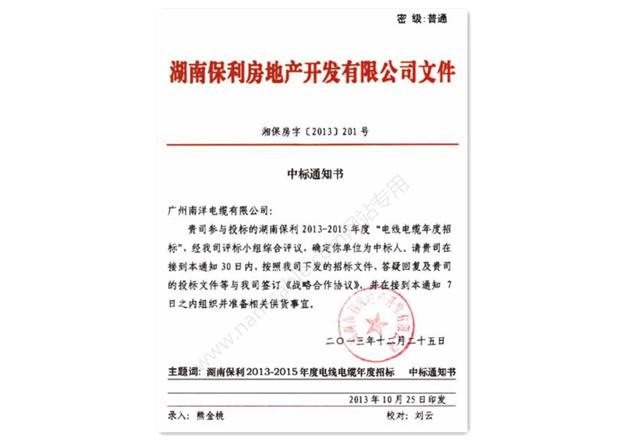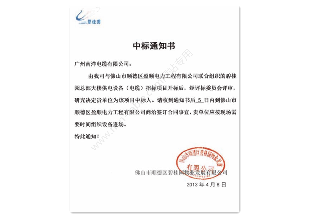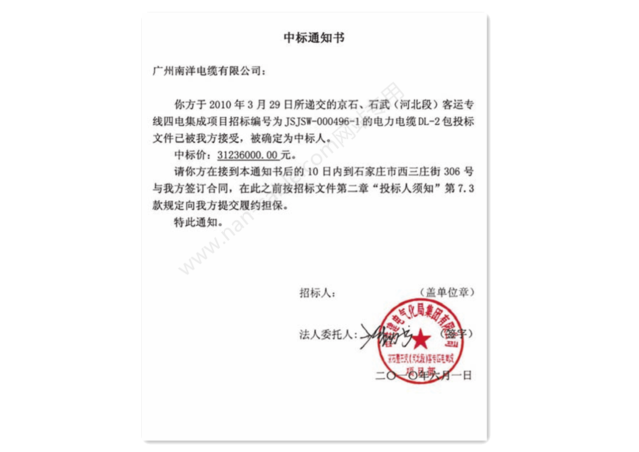 南方電(diàn)網低壓中标通知書(shū)