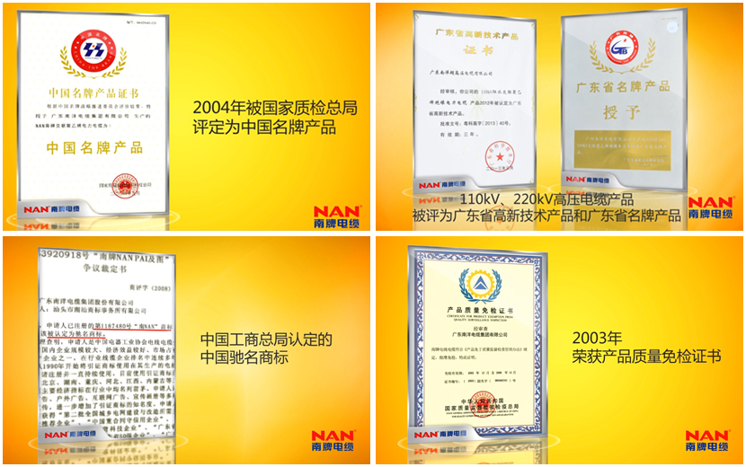 南洋電(diàn)纜爲行業先驅,是國家工商總局認定的中國馳(chí)名商标,被國家質檢總局評爲中國名牌,品牌知名度高。