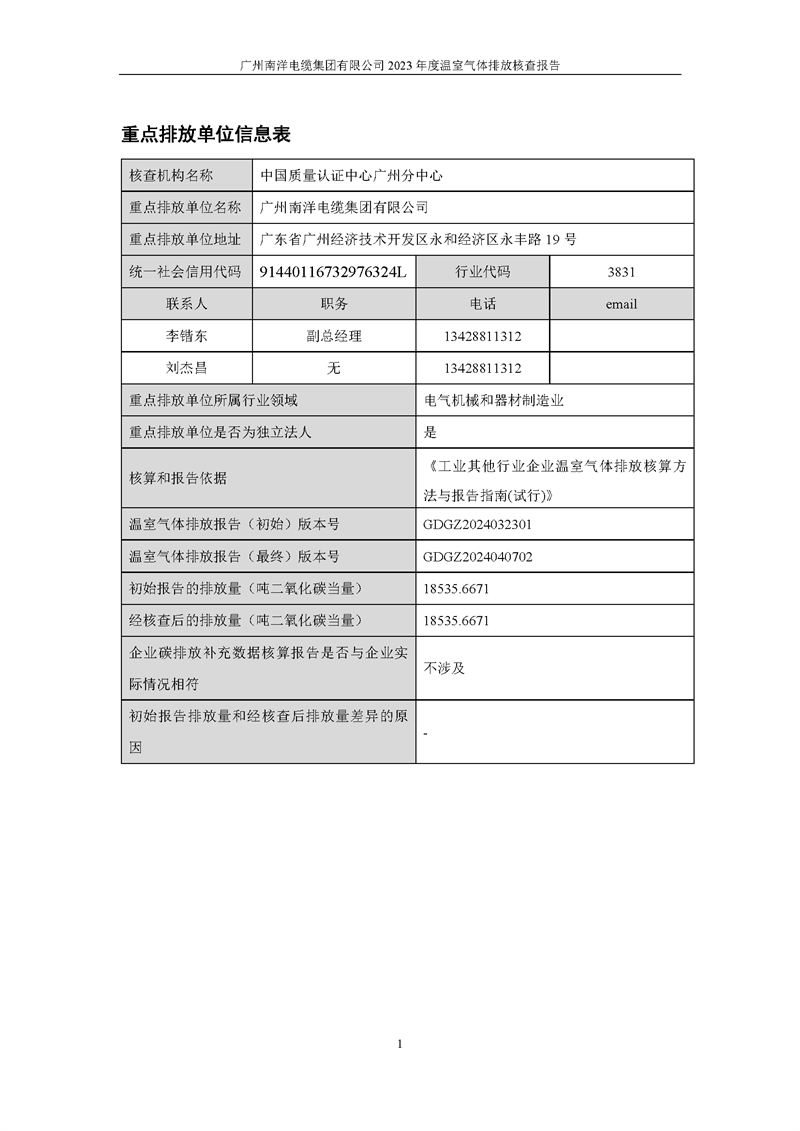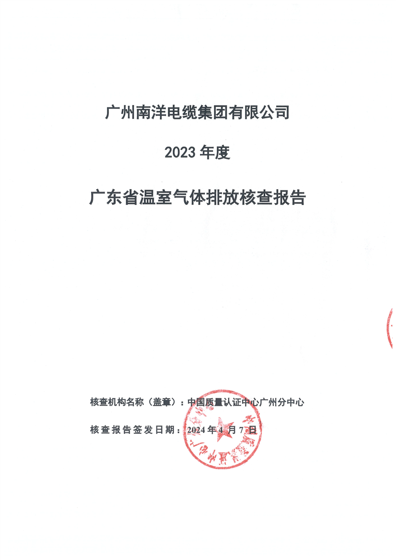 廣州南洋電纜集團有限公司2023年度廣東省溫室氣體排放核查報告