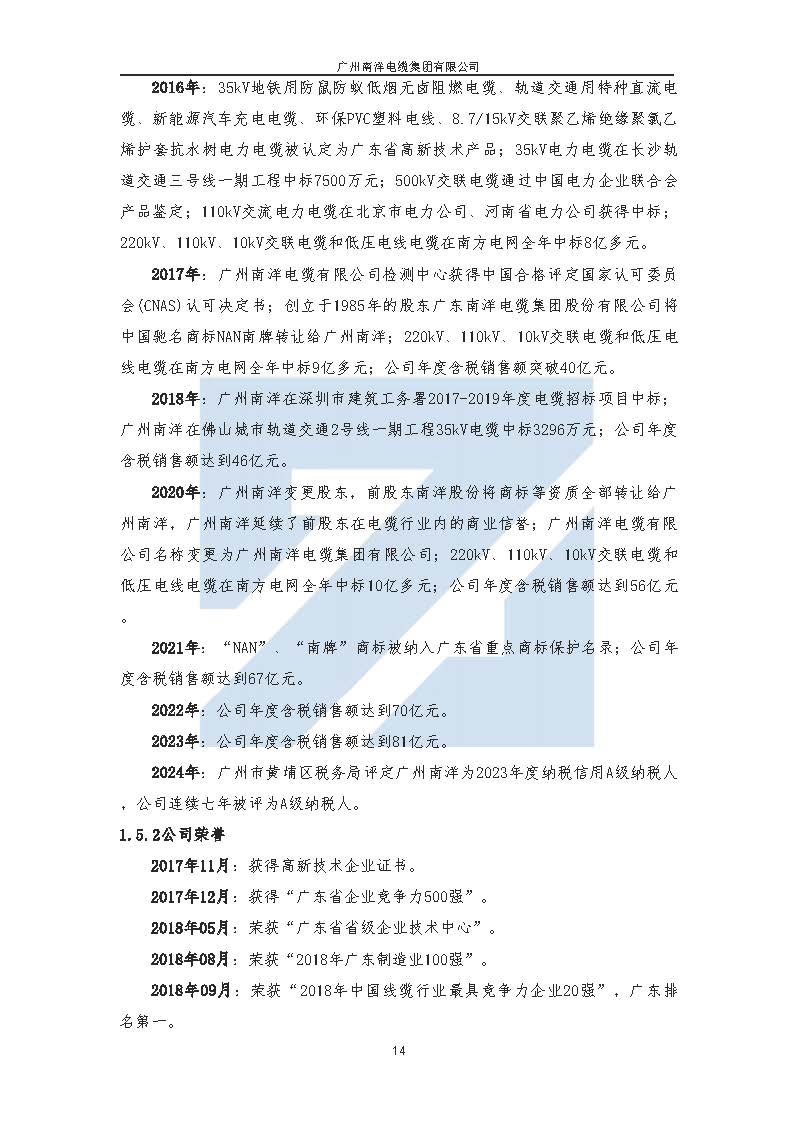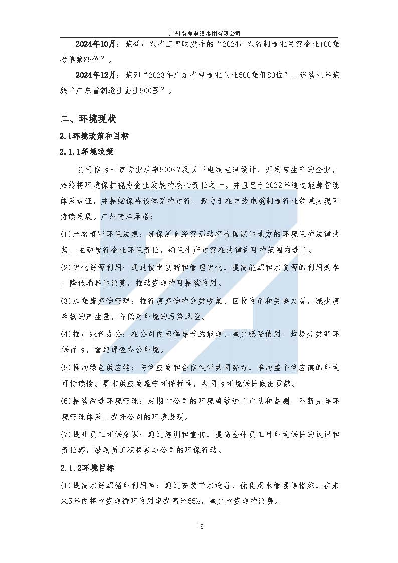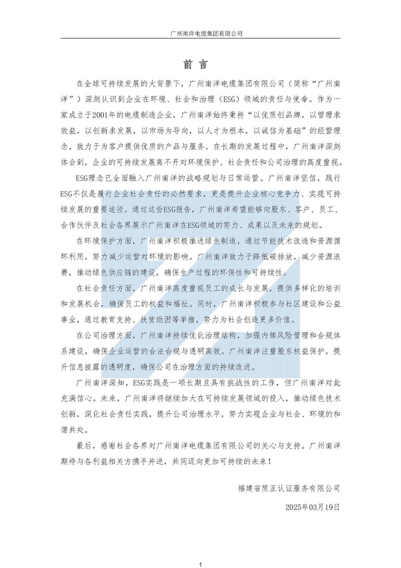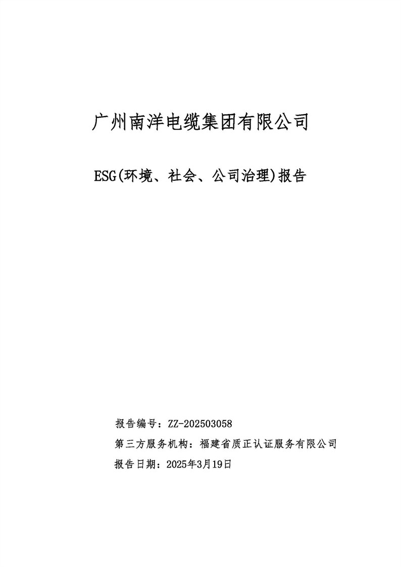廣州南洋電纜集團有限公司ESG(環境 、社會、公司治理)報告
